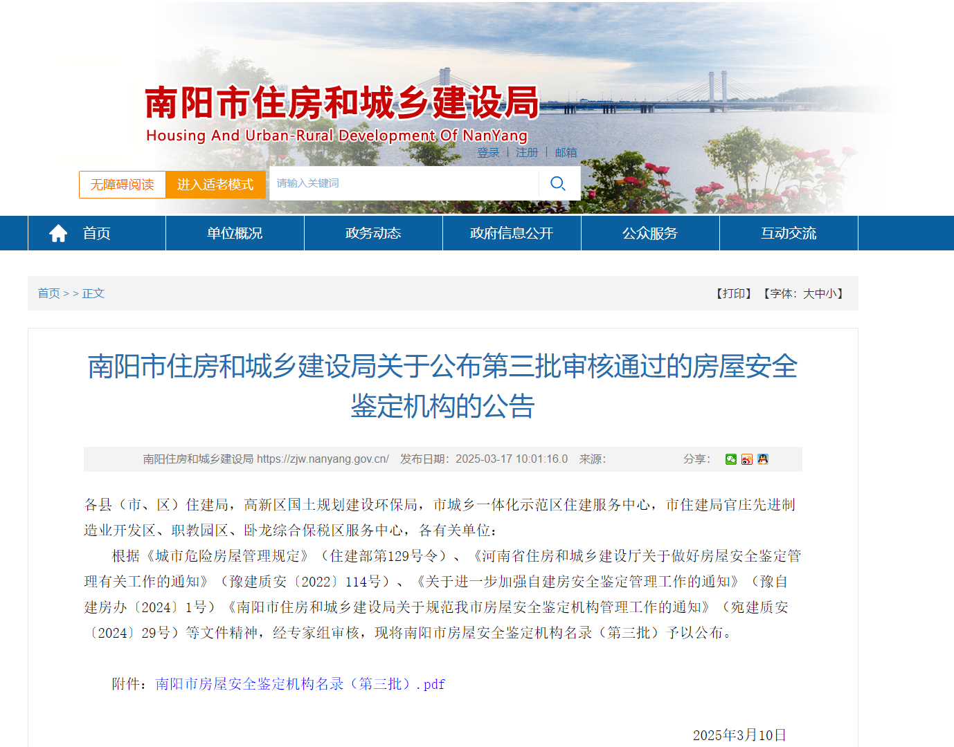 熱烈祝賀我司入冊(cè)南陽(yáng)市房屋安全鑒定機(jī)構(gòu)第三批名錄!!!