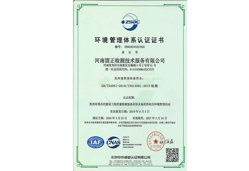環境管理體系認證證書