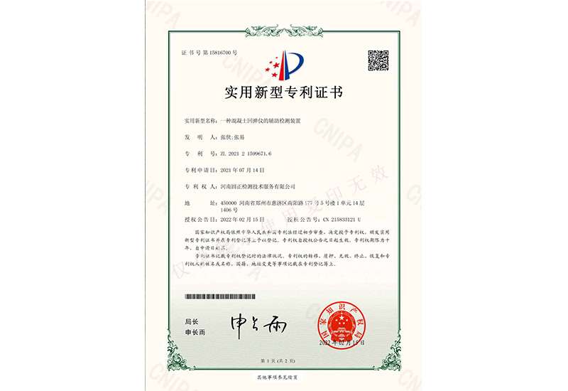 一種混凝土回彈儀的輔助檢測裝置實(shí)用新型專利證書
