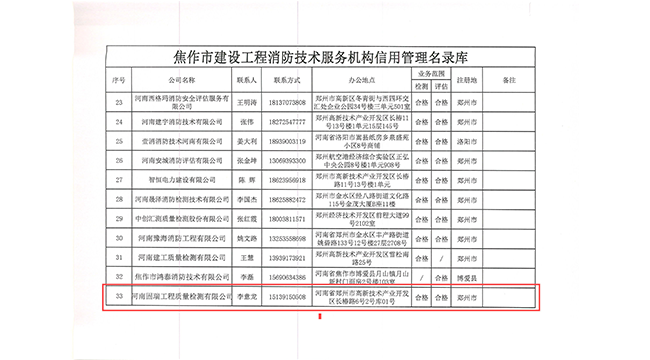 河南固瑞工程質量檢測有限公司是經河南省工商局注冊,省消防局批準的獨立法人企業。是省內消防驗收、消防檢測、消防維保,消防安全評估、電氣檢測、科研開發與技術服務專業一體化的消防驗收檢測機構。聯系電話:張經理 13523490368、13838613981